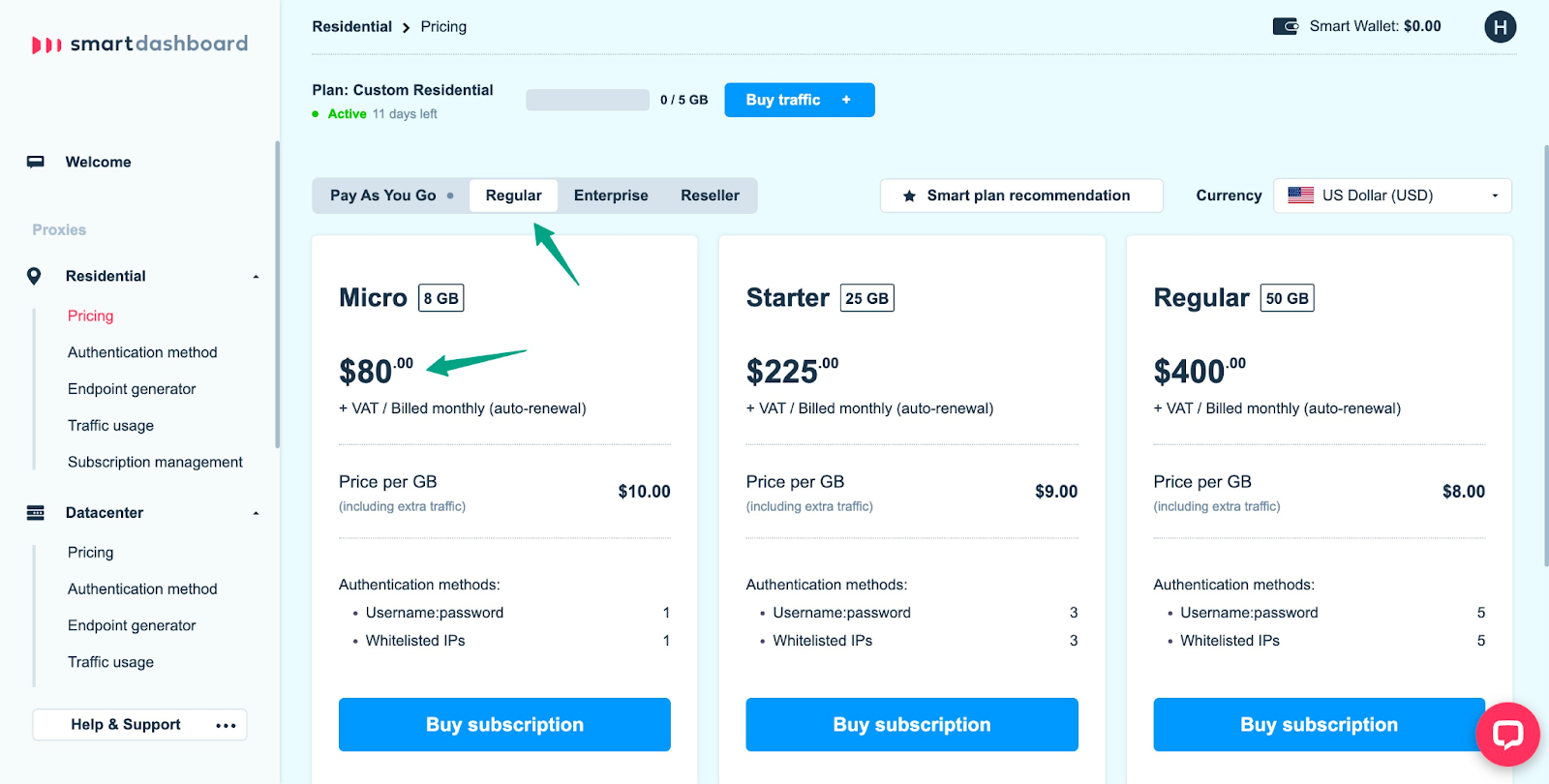 Here, I have shown the regular plan for Residential proxies.