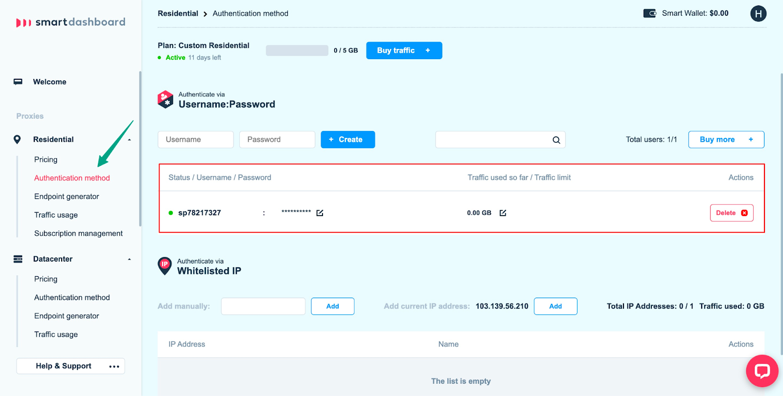 Now you will have both ways of authentication to be able to use the Residential Proxies.