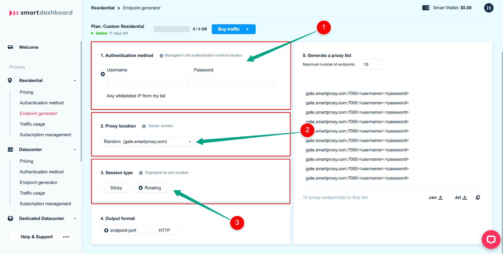 Now, you need to generate the endpoints. This will give you the command to use the residential proxies in your bot/software.