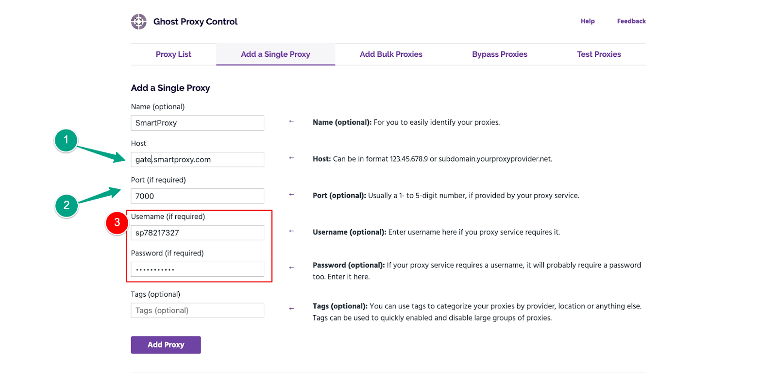 If you want to use it in a browser, The below screenshot shows you how to configure it in Ghost Browser.