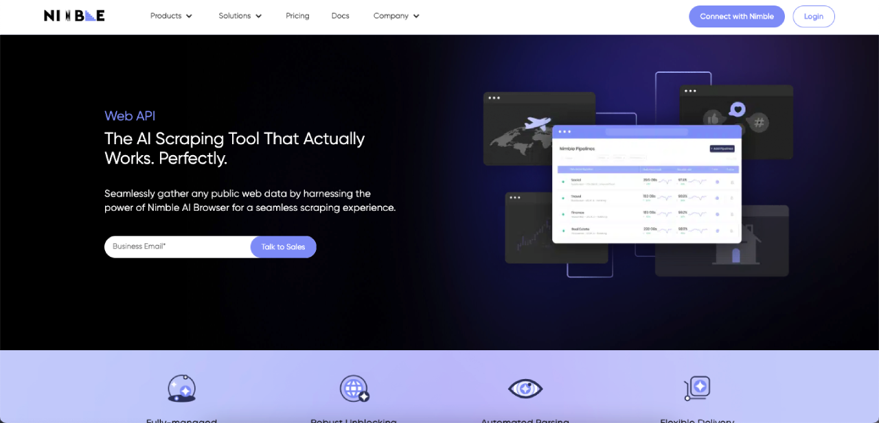This gives users the choice to either build their own logic on top of Nimble’s proxies or use the API to handle everything.
